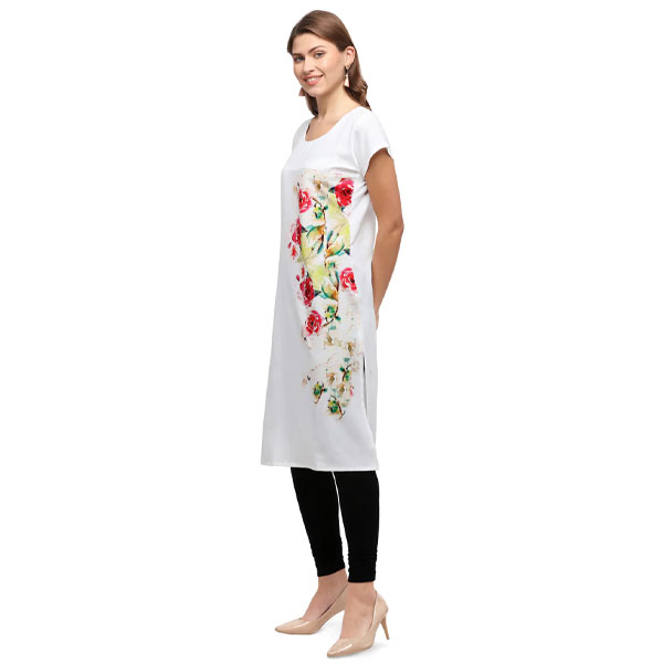 - grab this beautiful kurta made up of rayon fabric featuring round neck designs.