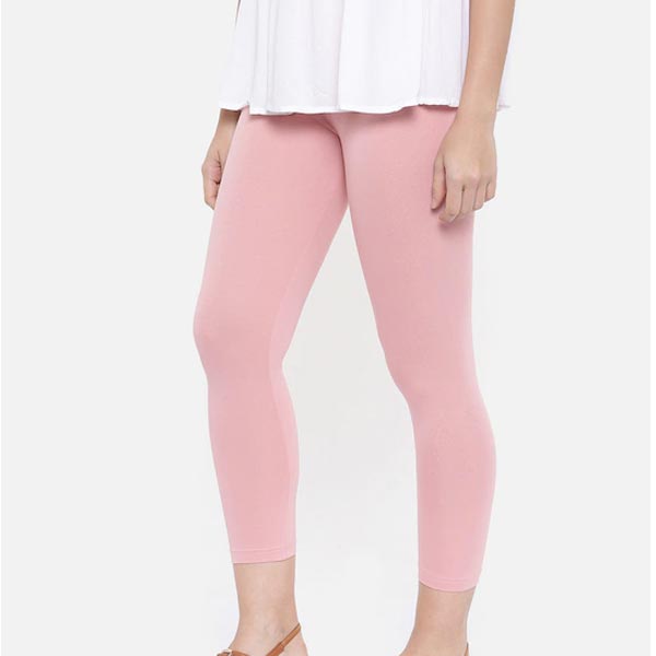 Women Pink Solid Cropped Leggings